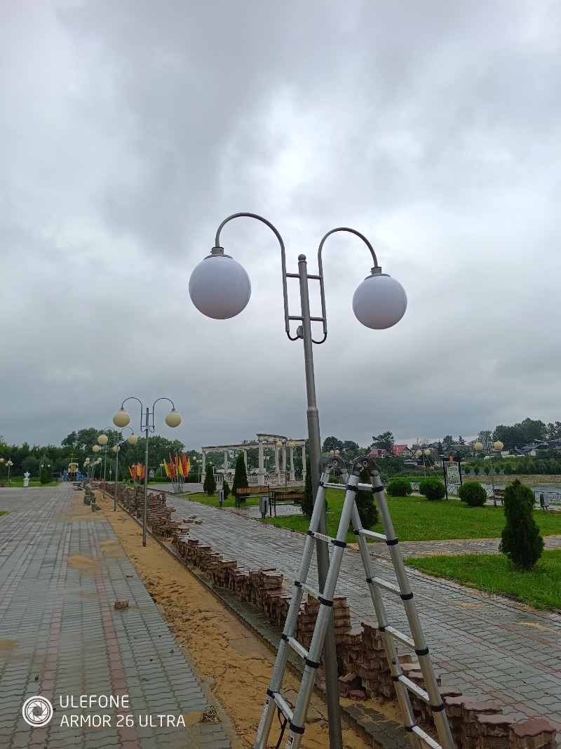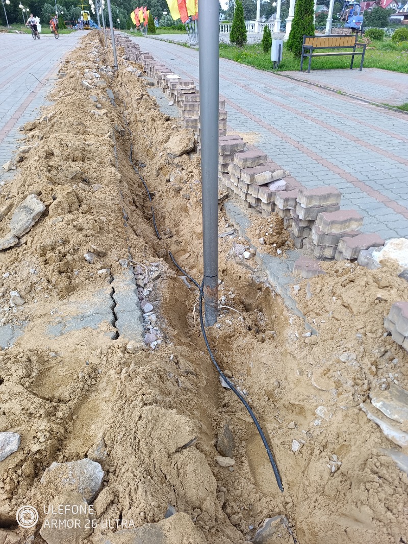 Ремонт освещения на набережной р. Серая г. Александров, прокладка бронированного кабеля подземным способом, Замена фонарей, подвод напряжения для стеллы Я Люблю Александров